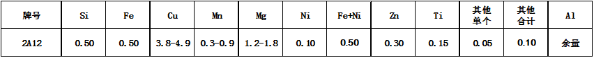 產(chǎn)品介紹 2A12-H112鋁合金為一種高強(qiáng)度硬鋁,可以進(jìn)行熱處理強(qiáng)化;2A12鋁合金點(diǎn)焊焊接性良好,用氣焊和氬弧焊時(shí)有形成晶間裂紋的傾向;2A12鋁合金在冷作硬化后可切削性能尚好。抗蝕性不高,常采用陽(yáng)極氧化處理與涂漆方法或表面加包鋁層以提高抗腐蝕能力。 化學(xué)成分 產(chǎn)品特性